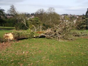 - La chute de branches ou d’arbres sur les lignes électriques, causant des dommages importants au réseau et des coupures pouvant toucher tout un quartier, voire l’ensemble de la commune ;