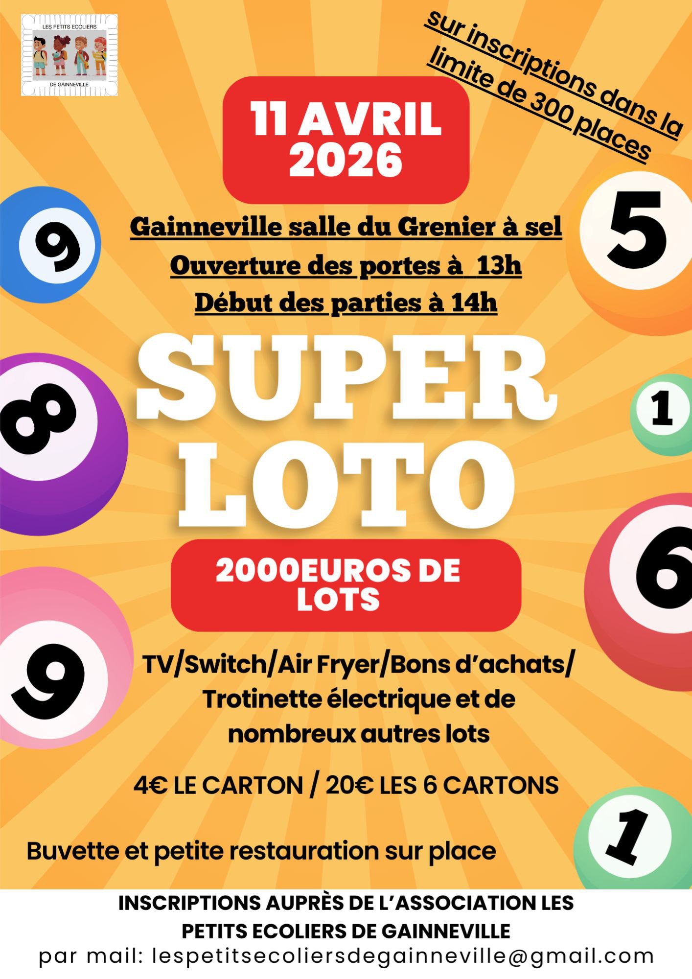 AgendaLoto des petits écoliers : 11 avril au Grenier à Sel Résultats de l’élections municipales second tour Conseil Municipal d’installation : vendredi 27 mars à 18h, salle des associations